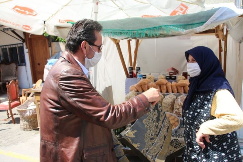Başkan Yanmaz Tarihi Mahalle Pazarında seccade dağıttı