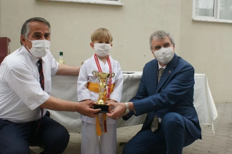 Başkan Yüce’den sarı kuşak alan 6 yaşındaki Yekta’ya ödül