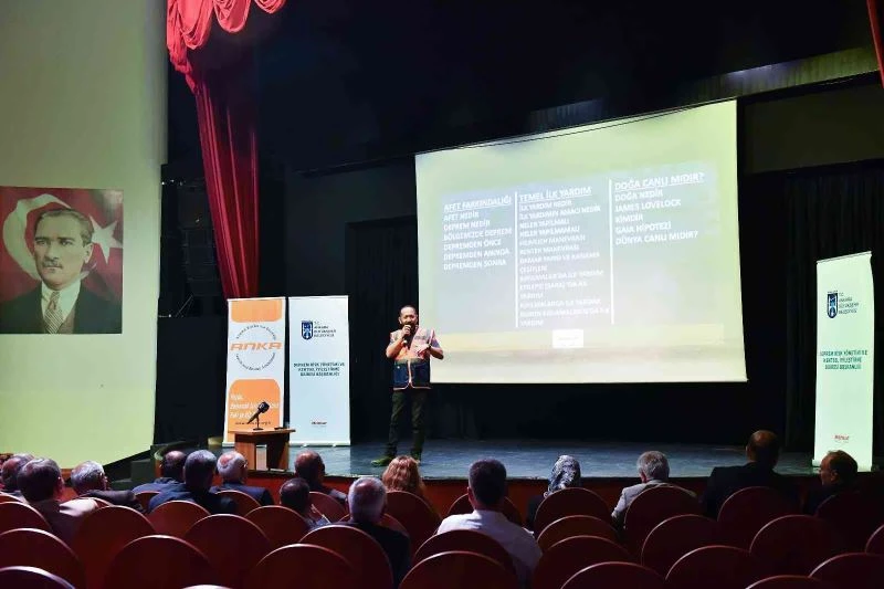 Gençlik Parkı Necip Fazıl Salonu’nda düzenlenen eğitim programına katılan Deprem Risk Yönetimi ve Kentsel İyileştirme Daire Başkanı Mutlu Gürler toplum çapında farkındalık oluşturarak vatandaşları afetlere hazır hâle getirmek istediklerini vurgulayarak, şu bilgileri verdi: