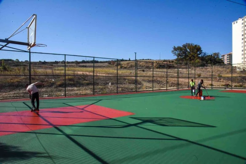 Basketbol ve voleybol sahalarında yenileme bakım çalışması