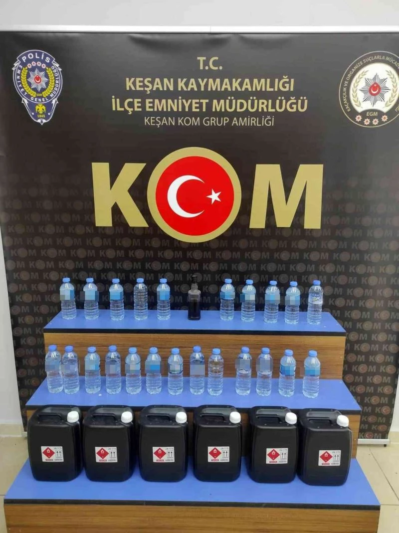 Edirne’nin Keşan ilçesinde Emniyet Müdürlüğü Kaçakçılık ve Organize Suçlarla Mücadele Grup Amirliği ekipleri, bir evde yapma rakı ve etil alkol ele geçirdi.