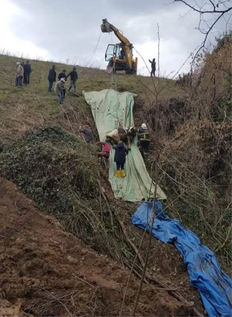 Ordu’nun Kumru ilçesinde otlanmak için girdiği derede bataklığa saplanan inek, itfaiye ve belediye ekiplerinin çalışması sonrası kurtarıldı.