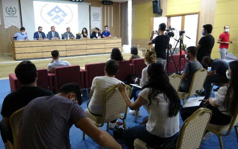 Van Baro Başkanı Avukat Zülküf Uçar’ın da katıldığı basın toplantısına HDP Van Milletvekili Muazzez Orhan, Van Baro Başkan Yardımcısı Hamza Çiftçi ile komisyon üyeleri katıldı.