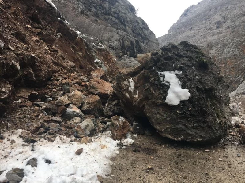 Batman’da yamaçtan kopan dev kaya parçası köy yolunu ulaşıma kapattı. Kayanın düştüğü sırada yoldan araç geçmemesi muhtemel bir faciayı engellemiş oldu.