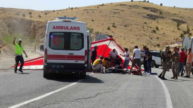 Kaza, Gercüş ilçesi Ayrancı Tepesinde öğle saatlerinde meydana geldi. Yamaç paraşütü yapmak için havalanan Emin Çoban (41) ve Ali Özkan (48) havalandıktan kısa bir süre sonra bilinmeyen bir nedenle yere çakıldı. Çevredekilerin haber vermesi üzerine jandarma, polis ve sağlık ekipleri bölgeye sevk edildi 112 sağlık ekipleri ağır yaralanan paraşütçüler Çoban ve Özkan’a kaza yerinde müdahalede bulundu.
