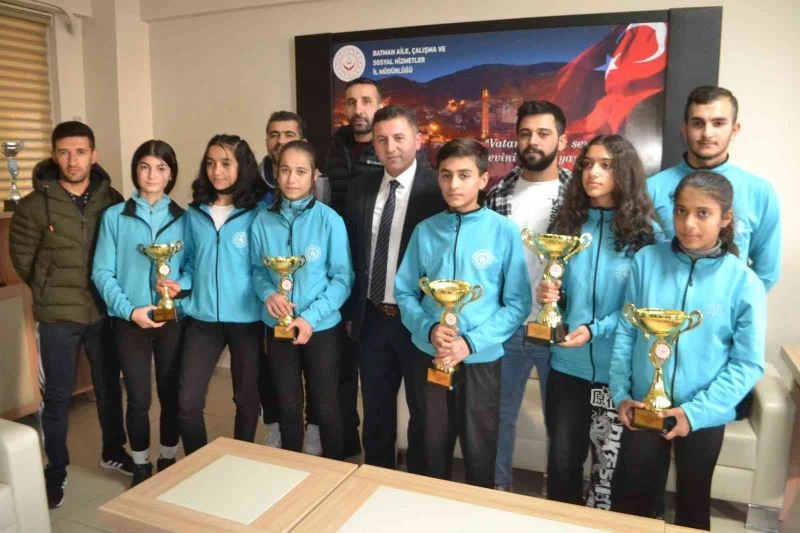 Batman Batı Raman yolunda yapılan yarışmaya Aile Sosyal ve Politikalar Kulübü adına 6 takım ile katılan öğrenciler, toplam 6 kupa aldı. Öğrenciler, kupalarıyla Batman Aile ve Sosyal Hizmetler İl Müdür Yardımcısı Gençlik ve Spor Kulübü Başkanı Veysi Topkan’ı ziyaret etti. Gençlerin atletizm alanında başarı sağladığını söyleyen Topkan, sporcuların Batman Aile ve Sosyal Politikalar Gençlik Spor Kulübü’nün lisanslı öğrencisi olduğunu belirtti. Topkan, “Çocuklarımız, bu alanda çeşitli başarılar gösterdiler. Biz, birçok spor dalında sporcu yetiştiriyoruz. Önceliğimiz tabi ki devlet korumasında olan çocuklarımızın yetiştirilmesi. Çeşitli spor alanlarında başarı aldığımız gibi atletizm alanında da bu gençlerimizle biz başarı sağladık. İl, bölge ve Türkiye genelinde çeşitli alanlarda dereceler elde ettik ve bunu diğer sportif branşlarımızla da çeşitlendirmek istiyoruz” dedi.