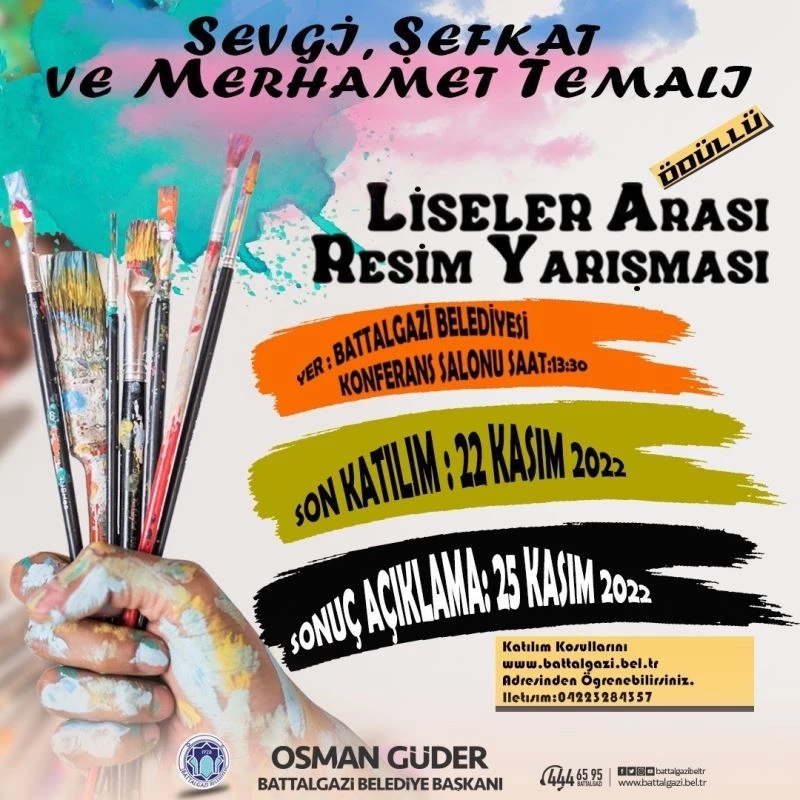 Battalgazi Belediyesi, Sevgi, Şefkat ve Merhamet temalı “Liselerurası Ödüllü Resim yarışması gerçekleştirecek.