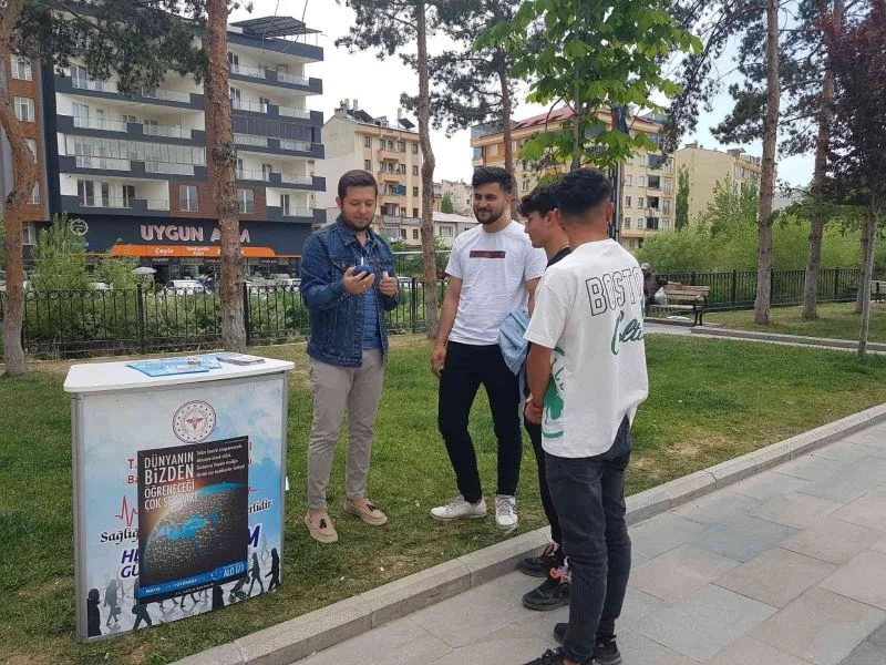 Cumhuriyet Caddesi üzerinde kurulan stantta sağlık ekipleri, “Dünya Tütünsüz Günü” etkinliğine dair bilgilendirmede bulundu.