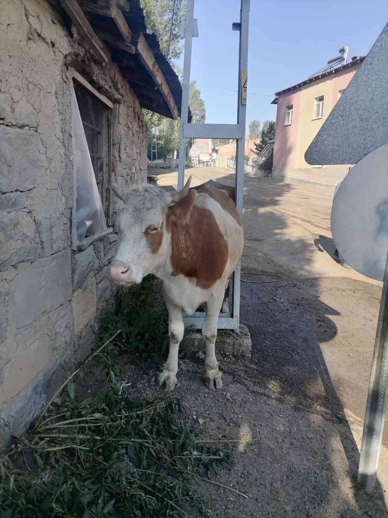 Bayburt’ta garip olay inek elektrik direğinin arasında sıkıştı