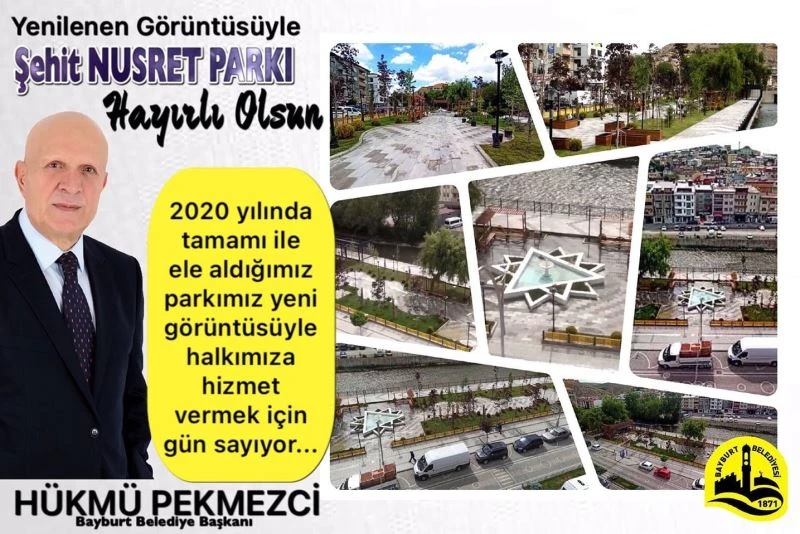 Bayburt Belediye Başkanı Hükmü Pekmezci, “Bayburt’umuza güzel alanlar kazandırma çalışmalarımızı sürdürüyoruz. Yaz sezonlarında hemşehrilerimizin rahat ve nezih bir ortamda oturup vakit geçirebilecekleri bir mekân haline getirdiğimiz Şehit Nusret Parkı’nda çalışmalarımızı tamamlamak üzereyiz. Kısa bir süre sonra halkımızın hizmetine sunmuş olacağız. Şehrimizin ihtiyaç duyulan değişik bölgelerinde yeşil alan oluşturma faaliyetlerimiz de devam etmektedir.” dedi.