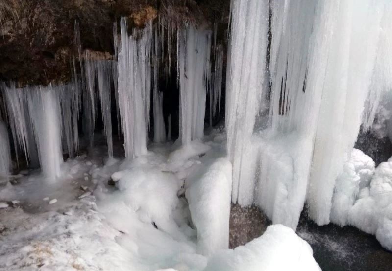 Bayburt’ta, her mevsim ziyaretçilerine ayrı bir güzellik sunan Sırakayalar Şelalesi, dondurucu soğuğun etkisiyle buz tuttu.