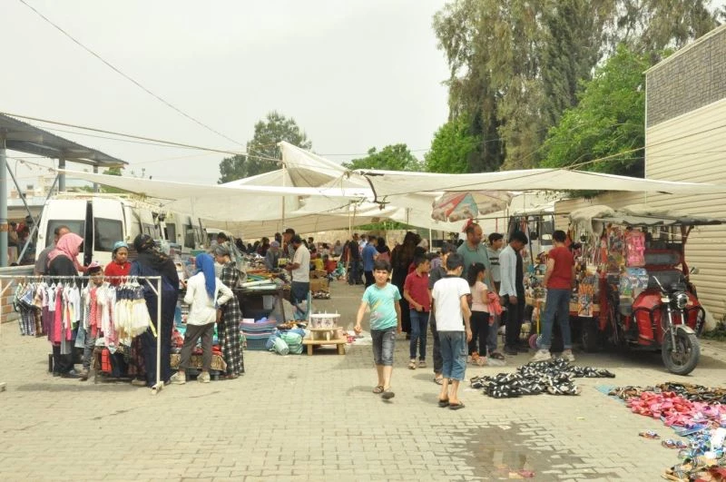 Şanlıurfa’nın Ceylanpınar ilçesinde bayram alışverişi pazarcıların yüzünü güldürdü.