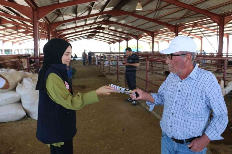 2022 yılı kurban hizmetlerinin uygulanmasına dair tebliğ ve ilgili komisyon kararları çerçevesinde, Erzincan Merkez ve ilçelerinde kurbanlık hayvan pazarlarında denetimler aralıksız devam ediyor. İl Tarım ve Orman Müdürlüğü Hayvan Sağlığı ve Yetiştiriciliği Şube Müdürlüğü ekipleri tarafından kurbanlık hayvan pazarlarında gerekli teknik ve sağlık tedbirlerinin kontrolleri yapılarak Tarım ve Orman Bakanlığınca hazırlanan bilgilendirme broşürleri vatandaşlara dağıtıldı.