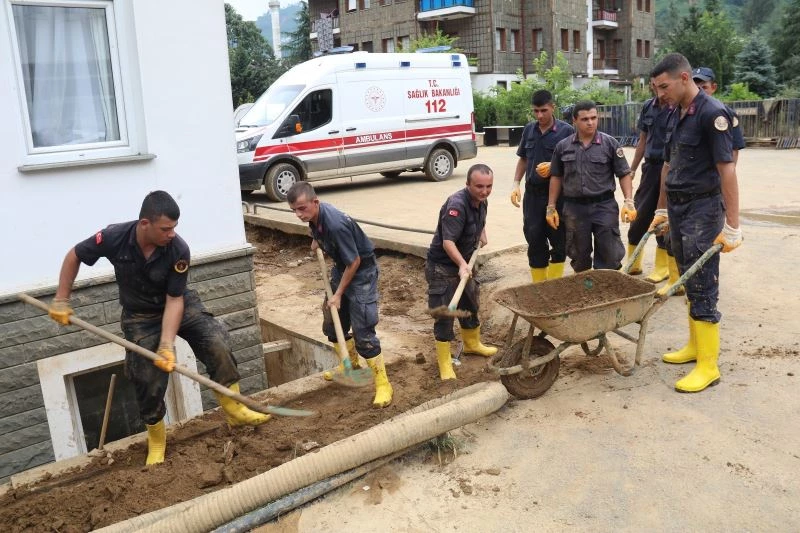 Geçtiğimiz çarşamba günü meydana gelen selde en çok etkilenen Rize’nin Güneysu ilçesinde temizlik çalışmaları jandarma ekipleri tarafından bayramın 1. gününde de sürdürülüyor.