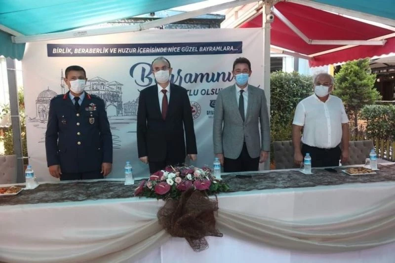 Balıkesir’in Bandırma ilçesinde Kurban Bayramı’nın birinci gününde gerçekleştirilen protokol bayramlaşmasına pandemi tedbirleri damgasını vurdu.