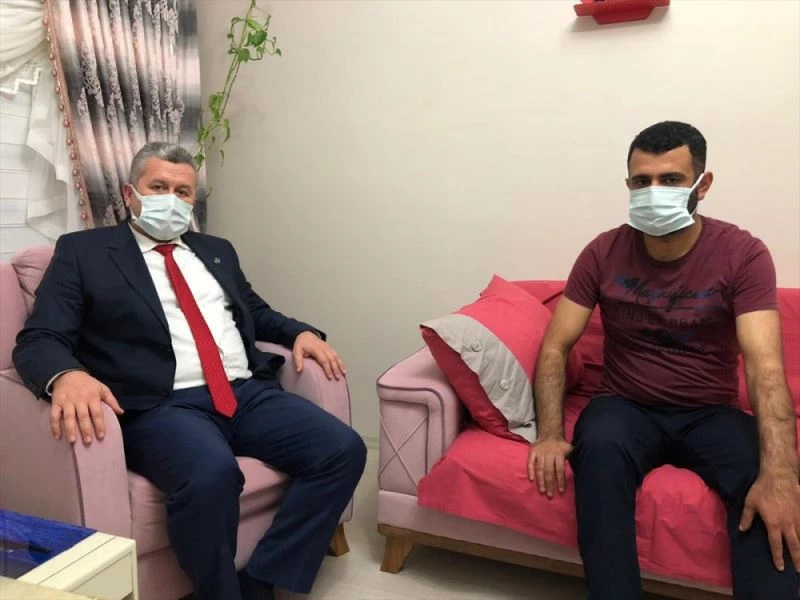KAHRAMANMARAŞ (AA) - Büyük Birlik Partisi (BBP) Genel Başkan Yardımcısı Mahmut Yardımcıoğlu, Kahramanmaraş'ta cinayet zanlısını gözaltına almak için gittiği otelde zanlının silahlı saldırısı sonucu yaralan polis memurunu evinde ziyaret etti.