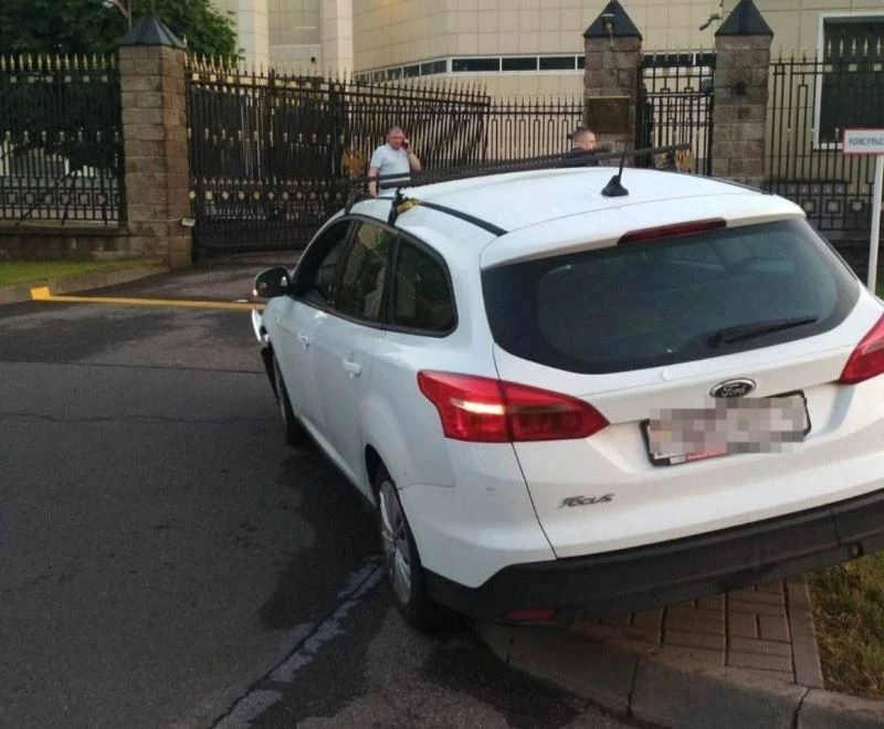 Belarus’ta bir araç Rus Büyükelçiliğinin girişine daldı