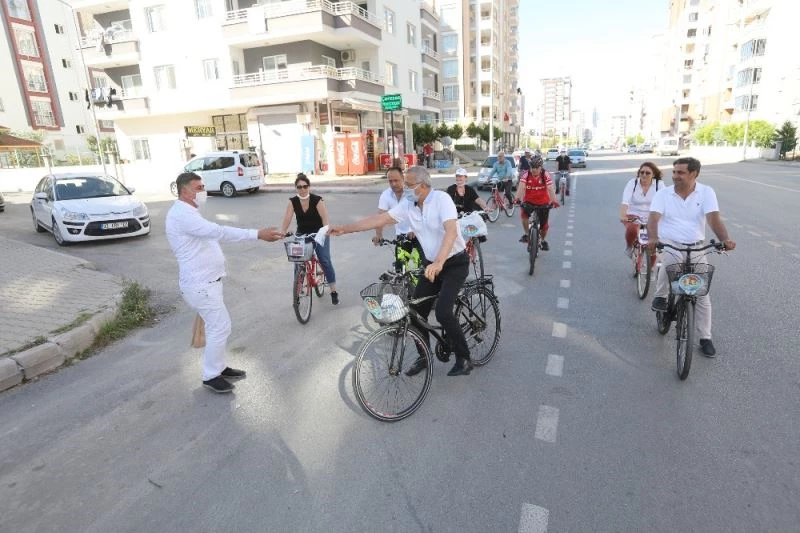 MERSİN (İHA) – Mersin’de merkez ilçe Mezitli Belediye Başkanı Neşet Tarhan, bisikletine atladı, sokak sokak gezerek vatandaşlara maske dağıttı. Korona virüs salgını nedeniyle bu yıl Avrupa Hareketlilik Haftası etkinliklerini, birkaç belediye çalışanıyla birlikte gerçekleştirdiği etkinlikle kutlayan Başkan Tarhan, hem bisiklet kullanımına dikkat çekmek hem de maske dağıtarak farkındalık oluşturmak istediklerini söyledi.