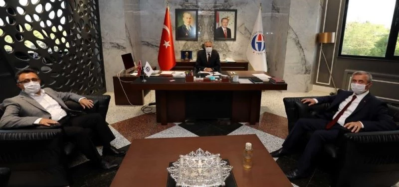 Gaziantep Şahinbey Belediye Başkanı Mehmet Tahmazoğlu ve Oğuzeli Belediye Başkanı Mehmet Sait Kılıç, Gaziantep Üniversitesi (GAÜN) Rektörü Prof. Dr. Arif Özaydın’a hayırlı olsun ziyaretinde bulundu.