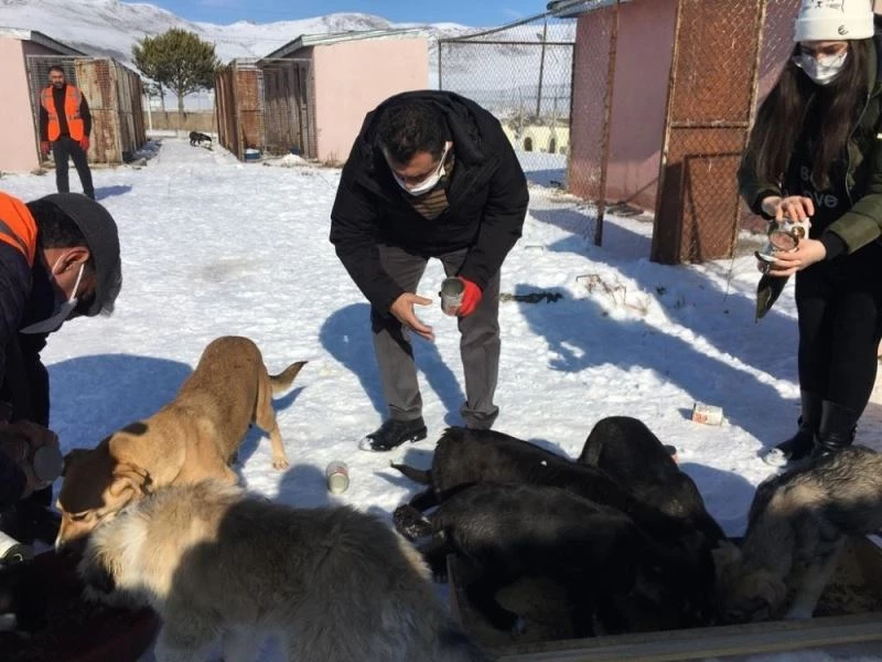 Ardahan Belediyesi ve hayvan sever gönüllüler de hafta sonu soğuk hava ve kar yağışının etkisi altında kalan can dostlarını unutmadı.