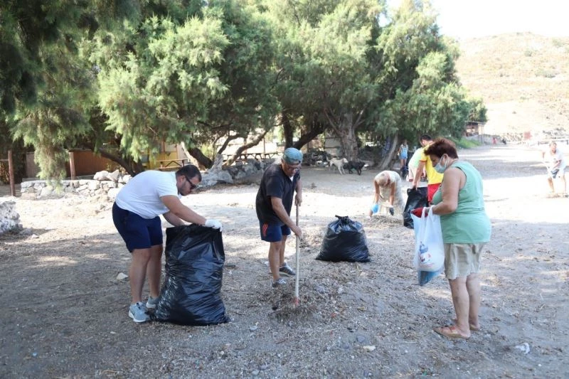 Belediye Destek Hizmetleri ile Temizlik İşleri Müdürlüğü tarafından yürütülen çalışmalar çerçevesinde, belediye ekipleri ile Gümüşlük Mahallesi Çukurbük Mevkii’ndeki Sankop Sitesi gönüllüleri tarafından sahilde temizlik çalışması yapıldı. Temizlik etkinliğine plaja günübirlik gelen vatandaşlar ve turistler de katıldı. Yaklaşık 2 saat süren temizlik çalışması sonunda 80 poşet atık toplandı.
