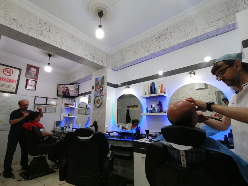 Vatandaşların bayrama temiz bir şekilde girmek için yoğun talep gösterdiği berberler müşterilerine yetişebilmek için geç saatlere kadar mesai yaparken, yaşanan yoğunluktan memnun olduklarını belirttiler.