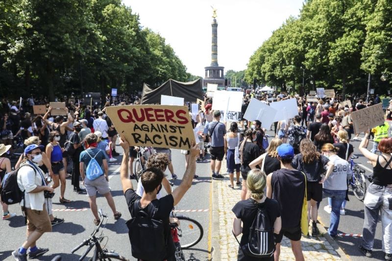 Avrupa’da ırkçılık karşıtı gösteriler bugün de devam etti. Almanya’nın başkenti Berlin’de bulunan Zafer Anıtı’nda toplanan yaklaşık bin 500 kişi ABD’de geçen ay polis tarafından öldürülen siyahi George Floyd için “Black Lives Matter” (Siyahların Hayatı Önemlidir) mitingi düzenledi. Mitinge sosyal medya üzerinden yapılan çağrılar sonucu 30 bine yakın kişinin katılması beklenirken, katılım beklenenin çok altında gerçekleşti. Göstericilerin, miting sırasında sosyal mesafe kuralı nedeni ile yerlere 1,5 metre aralıklarla şeritler çektiği görülürken, çoğunluk ise maske takmaya özen gösterdi. Berlin polisi miting bölgesinde geniş güvenlik önlemleri aldı. Polis, sık sık araçlardan anonslar yaparak, maske takılması ve sosyal mesafe kuralına uyulması için çağrıda bulundu.