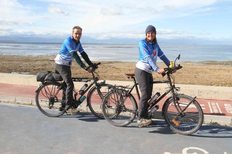 Bisiklet tutkunu Belçikalı çift, binlerce kilometre pedal çevirerek ulaştıkları Türkiye’de Konya’nın Beyşehir ilçesine geldi.