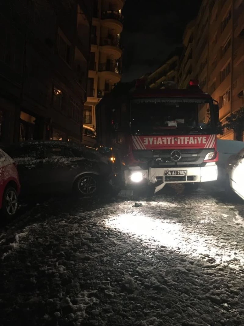 Beşiktaş’ta buzlanan yolda itfaiye aracı 7 araca çarparak durabildi