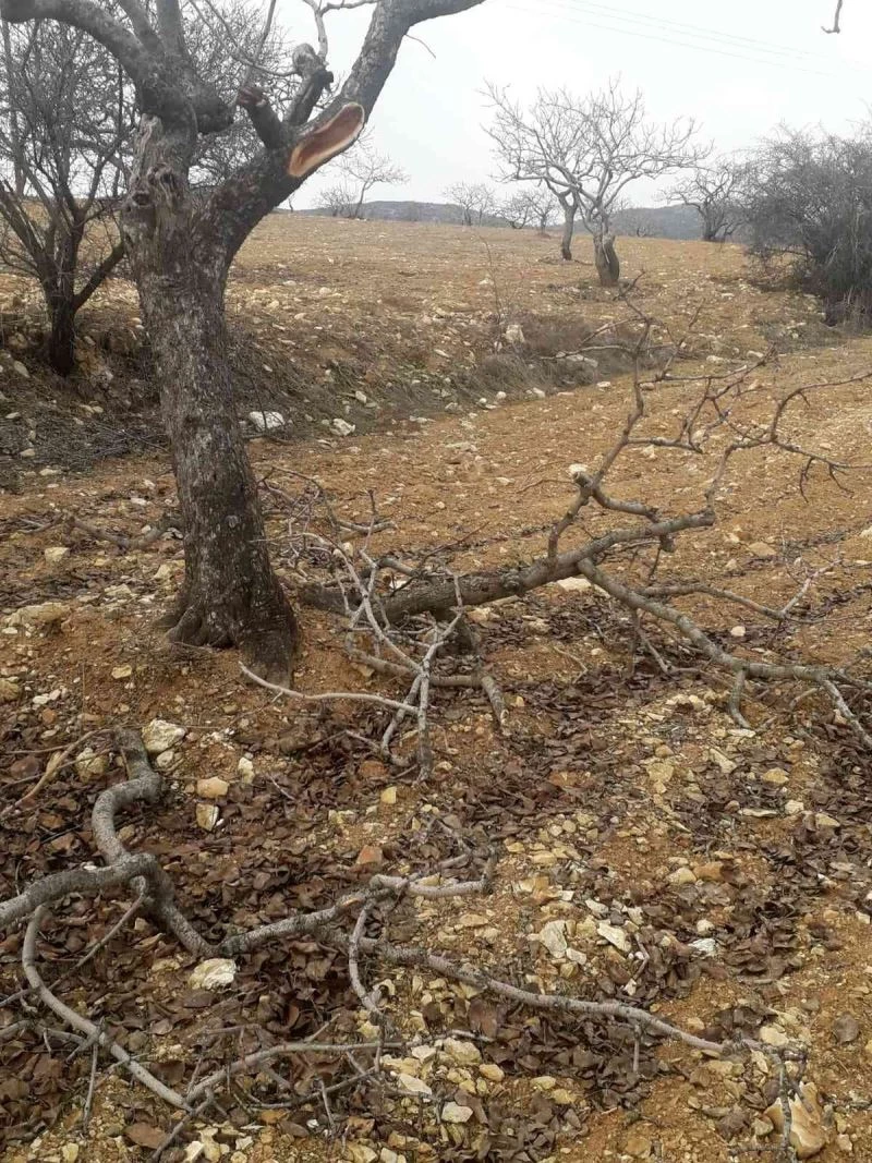 Adıyaman’ın Besni ilçesine bağlı Yukarı Söğütlü köyünde fıstık bahçesine giren şahıs yada şahıslar fıstık ağaçlarına zarar verdi.