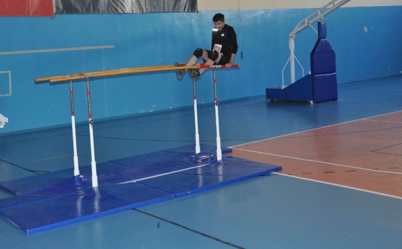 Kafkas Üniversitesi Sarıkamış BESYO Spor Salonu’nda yapılan ve ’performans beceri ve koordinasyon testinden oluşan sınavın ilk gününde erkek öğrenciler ter döktü. Bazı öğrencilerin beceri gerektiren parkurda zorlandığı görüldü.