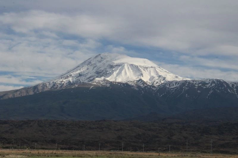 Iğdır ve Ağrı’da günlerdir etkili olan sağanak yağışlar sonrası Ağrı Dağı’na kar yağdı. ‘Türkiye’nin Çatısı’ olarak nitelendirilen ve 5 bin 137 metre yüksekliğiyle ülkenin en yüksek rakımlı noktası olan Ağrı Dağı’nın zirvesi beyaz örtüyle kaplandı. Baharın gelişiyle birlikte çevresinde ve eteklerinde yeşil alanların hakim olduğu Ağrı Dağı’nın yüksek kesimleri ise beyaz örtüye büründü. Her mevsim ihtişamıyla görenleri kendine hayran bırakan Ağrı Dağı güzelliğiyle büyülemeye devam ediyor.