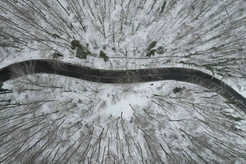 İstanbul’da beklenen kar yağışının etkili olmasıyla birlikte megakentin pek çok yeri beyaza büründü. Belgrad Ormanı da lapa lapa yağan karla kaplandı. Aralıklı kar yağışının devam ettiği bölgede kartpostallık görüntüler ortaya çıktı. Kar manzarası ise dron ile havadan görüntülendi.