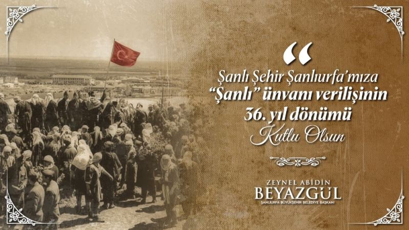 Şanlıurfa Büyükşehir Belediye Başkanı Zeynel Abidin Beyazgül, Urfa’ya ’Şanlı’ unvanın verilmesinin 36. yıl dönümü nedeniyle bir mesaj yayımladı.
