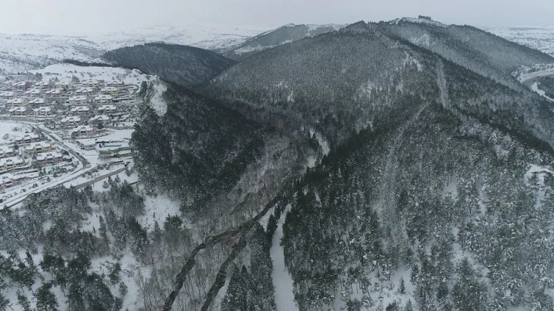 Ünlü mesire alanı piknik merkezi olan Değirmen Boğazı havadan görüntülendi, çam ağaçlarının içinde bulunan yerin beyaz hali vatandaşlar tarafından ilgiyle izlendi.