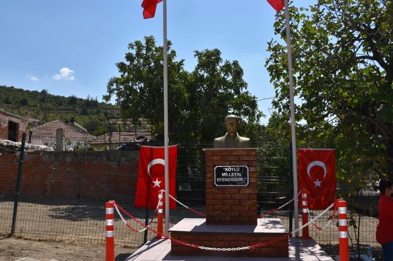 Manisa’nın Soma ilçesine bağlı Beyce Mahalle Muhtarı ve halkı tarafından 30 Ağustos Zafer Bayramında Beyce Mahalle Meydanına yapılan Atatürk Büstünün açılışı gerçekleştirilirken, dağa taşlardan yapılan dev Türk Bayrağı da tamamlandı.