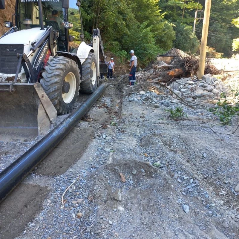 DÜZCE – Düzce’de geçtiğimiz aylarda yaşanan sel afetinde 15 kilometrelik içme suyu boru hattı yol ile birlikte sulara kapılarak parçalandı. Parçalanan içme su boru hattı çalışmaları devam ediyor.
