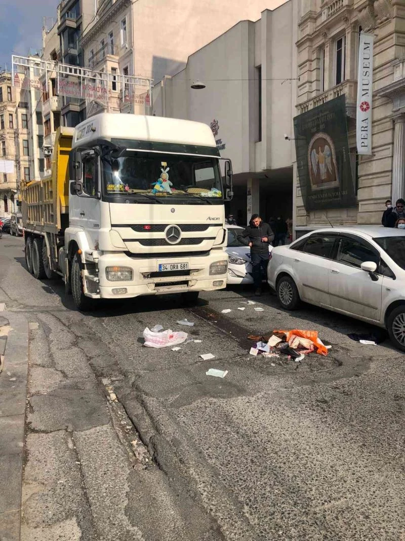 Beyoğlu’nda hafriyat kamyonunun çarptığı kişinin bacağı ezildi