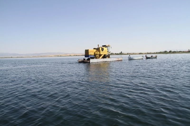 Türkiye’nin en büyük tatlı su gölü olan Beyşehir Gölü’nde bazı adalarda tarımsal faaliyetler de yürütülüyor. Dört tarafı tatlı sularla çevrili kara parçalarında üretilen ürünler, demir duba üzerinde gölde yüzdürülerek adaya çıkarılan biçerdöverler tarafından hasat ediliyor.