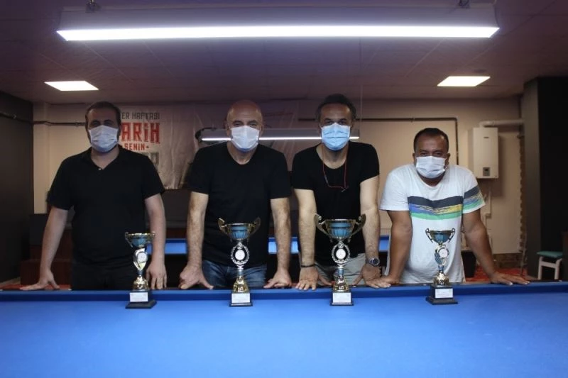 Düzce’de bilardo sporunun yeniden sevdirilmesi için bilardo turnuvaları düzenlenmeye devam ediliyor. 27-30 Ağustos 2020 tarihleri arasında Zafer Haftası etkinlikleri kapsamında Bilardo Spor Salonunda gerçekleştirilen turnuvaya toplam 74 sporcu katıldı. 3 Bant Bilardo Zafer Kupasında bilardoya gönül veren sporcular kıyasıya mücadele etti. Heyecanlı geçen müsabakalar sonunda finalde Kazım Canbul’u yenen Savaş Bulut kupanın sahibi oldu. “Tarih Senin Zafer Senin” sloganıyla başlayan Zafer Haftası etkinlikleri kapsamındaki 3 Bant Bilardo Zafer Kupasını Savaş Bulut birinci, Kazım Canbul ikinci, Emrecan Uslu ve Murat Şimşek üçüncü tamamladı. Dereceye giren sporculara ödüllerini Düzce Gençlik ve Spor İl Müdürlüğü Spor Hizmetleri Müdürü Gülay Ercan, Spor Şube Müdür Vekili Harun İşçi, Bilardo İl Temsilcisi Fatih Kerim Öztürk takdim etti.