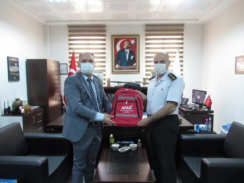 Ziyaret sonunda İl Müdürü Demirel, Albay Sandal’a AFAD deprem çantası hediye etti.