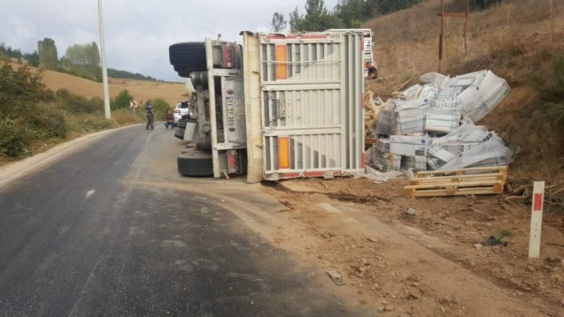 Bilecik’in Osmaneli ilçesinde, fayans yüklü tırın devrilmesi sonucu 1 kişi yaralandı.