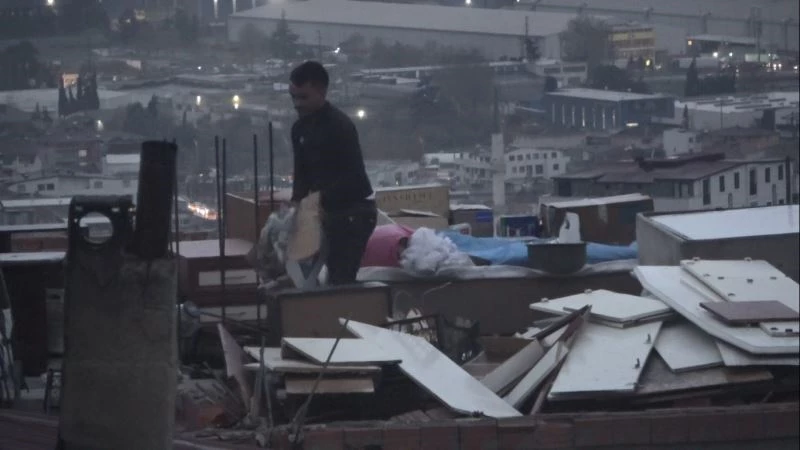 Kocaeli’nin Gebze ilçesinde fırtınada uçan binanın çatısı sokağın ortasına düştü. O sırada çatıda ve yolda bulunan vatandaşlar ölümden saniyelerle kurtulurken, bir vatandaş ise çatı katındaki çeyizleri kurtarabilmek için yoğun çaba sarf etti.