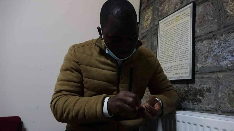Kamerun’dan binlerce kilometre uzaklıktan Trabzon’a gelerek Karadeniz Teknik Üniversitesi (KTÜ) İktisadi ve İdari Bilimler Fakültesi Uluslararası İlişkiler Bölümü’nde doktora eğitimi gören 37 yaşındaki John Madi Madi, Ortahisar Halk Eğitim Merkezi bünyesinde açılan kursta Kazaziye sanatının inceliklerini öğreniyor.