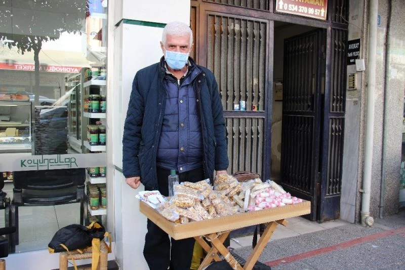 Aydın’da tatlı ustası Mehmet Cem Uğur 30 yıldır el yapımı fıstık ve susam helvaları ile geçimini sağlıyor. Bir metrekare seyyar tezgah üzerinde sattığı tatlılardan elde ettiği kazanç ile 4 çocuk yetiştiren Uğur, "Sağlığım el verdiği sürece işimin başında olmaya devam edeceğim" dedi.