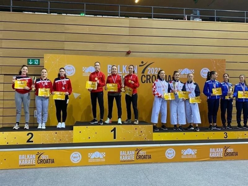 Denizli Büyükşehir Belediyespor Karate Takımı sporcuları Damla Su Türemen, Peri Koyuncu, Aslı Başak Pehlivan’dan oluşan Genç Kızlar Karate Kata Milli Takımı, Avrupa’nın ardından bir şampiyonlukta Balkanlar’dan aldı.