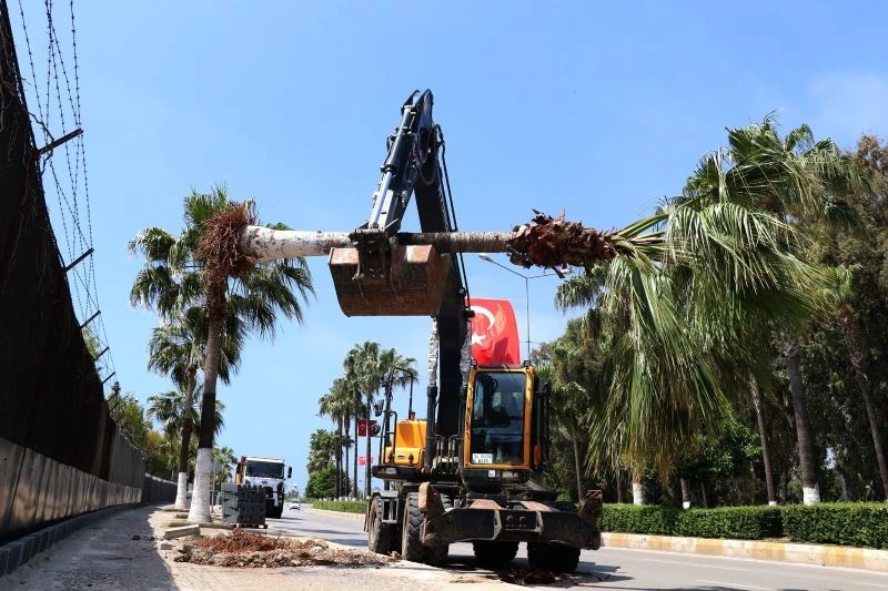 Bisiklet yolu proje alanındaki palmiyeler taşınıyor