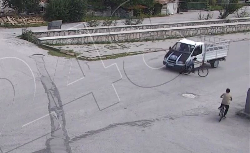 Kütahya’da bisikletli bir çocuğun ölümden döndüğü kaza anı saniye saniye kaydedildi.