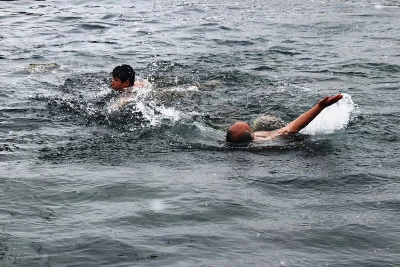 Bitlisliler eksi 10 derecede buz gibi suya girdiler