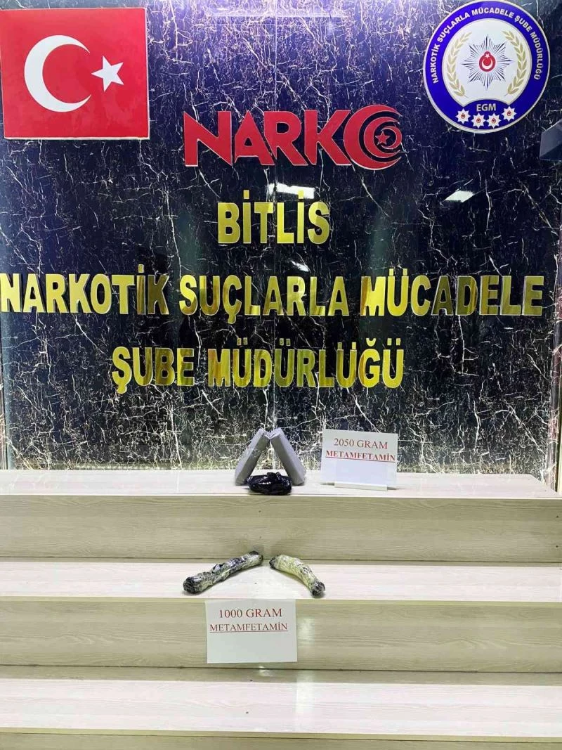Bitlis Valiliğinden yapılan açıklamada, Emniyet Müdürlüğü Narkotik Suçlarla Mücadele Şube Müdürlüğünce uyuşturucu ile mücadele kapsamında yapılan denetimlerin devam ettiği belirtildi. Açıklamada, “Denetimde durdurulan bir otobüs içerisinde yapılan aramada toplamda 3 kilogram 50 gram metamfetamin maddesi ele geçirilmiş, olay ile ilgili U.G. ve Y.A. isimli şüpheliler hakkında adli işlem başlatılmıştır. Uyuşturucu madde imalatı, kaçakçılığı ve kullanımına karşı yürütülen kararlı mücadelemiz devam edecektir” denildi.